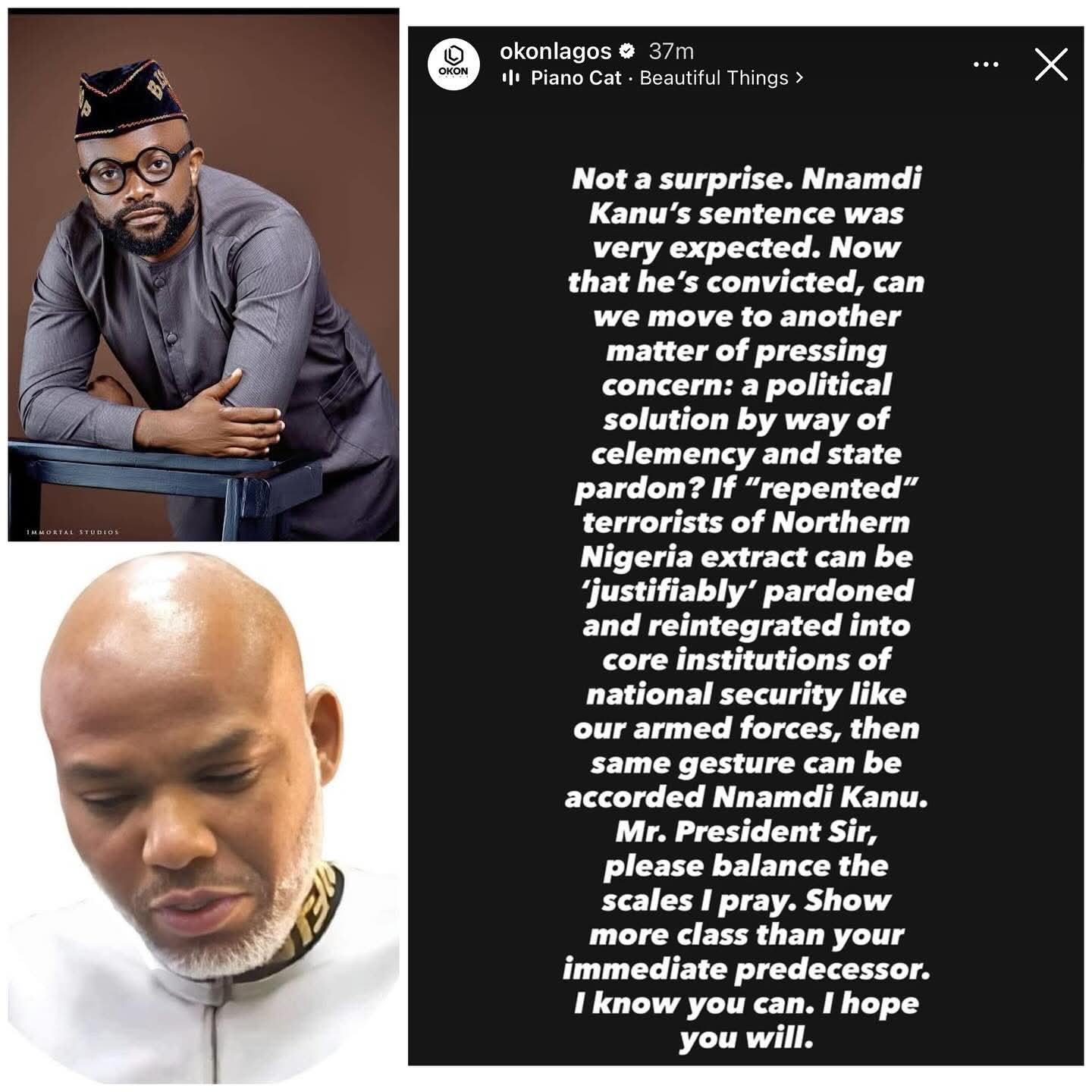 In a statement shared on his Instagram page, Umoh said Kanuβs conviction was βnot a surpriseβ and βvery expected,β but stressed that the next step should be national healing rather than prolonged confrontation.
